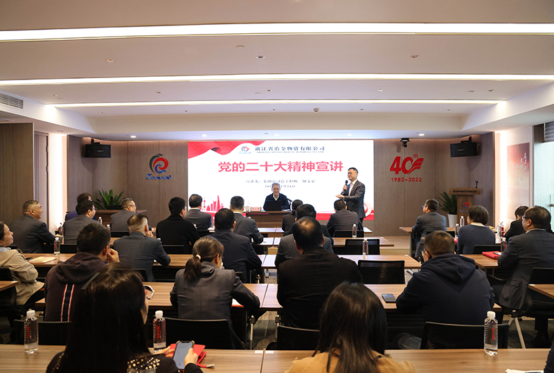 11月24日,集團公司總工程師胡文豪來冶金物資宣講黨的二十大精神。宣講會由冶金物資黨委書記、董事長鄭浩主持,公司領導班子成員和全體黨員參加了此次學習。